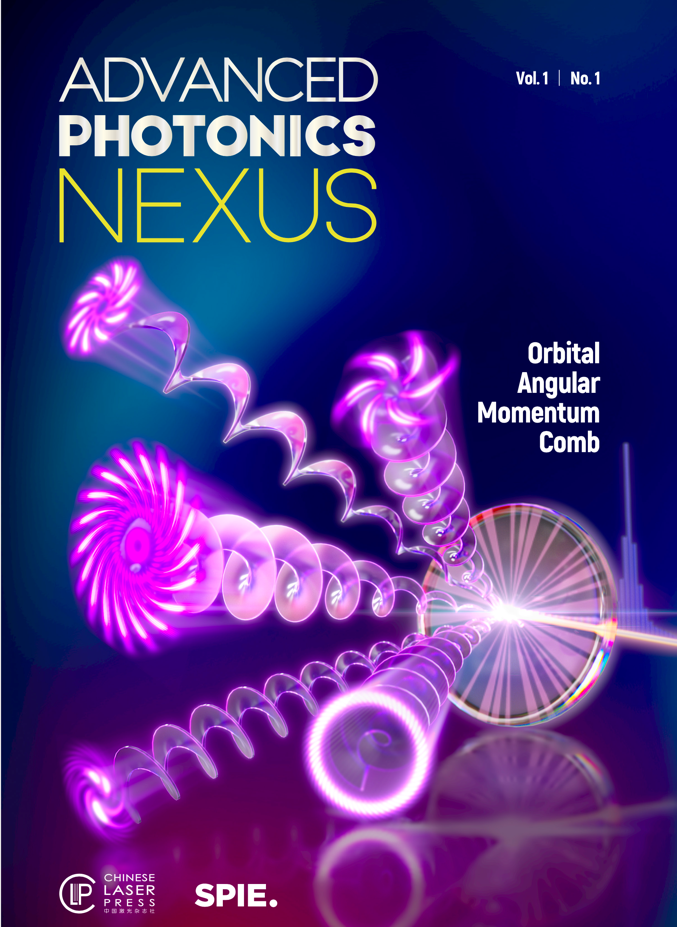 OAM光梳是一種在“ l 域”中由等模式間距的一系列分離OAM模式構成的復雜光場結構,其為超高光子效率信息編碼的載體,同時也是高密度全息加密技術的“鑰匙”。先前研究已經證明,采用純相位調制方法不可能將基模高斯光束轉化為OAM光梳,若要獲得OAM光梳,則必須采用迭代等方法無限逼近,而迭代過程是費時的,將高維信號編碼的優勢抵消殆盡。針對這一問題,該團隊從達曼光柵技術獲得靈感,構建了 x 坐標與 φ 坐標的映射關系,研制了角向二值化相位結構衍射光學器件,最終實驗獲得了127維OAM光梳,模式均勻性達92.04%,如圖1所示。由于不同的OAM光束對應固定的角向二值化相位的相位躍變點坐標,使得可根據數值解而無需任何迭代運算即可生成任意OAM光梳,有效的解決了現有技術生成高維OAM光束響應時間長的問題。該團隊公開了不同OAM光梳下角向二值化相位的相位躍變點坐標數值解,可供本領域科研及技術人員直接調用。該工作為高維渦旋光場調控提供了全新思路,發表于CLP與SPIE新辦刊物Advanced Photonics Nexus,并被選為AP Nexus創刊首期封面,如圖2所示。付時堯副研究員是該文的第一作者及通訊作者,高春清教授為該文的共同通訊作者。