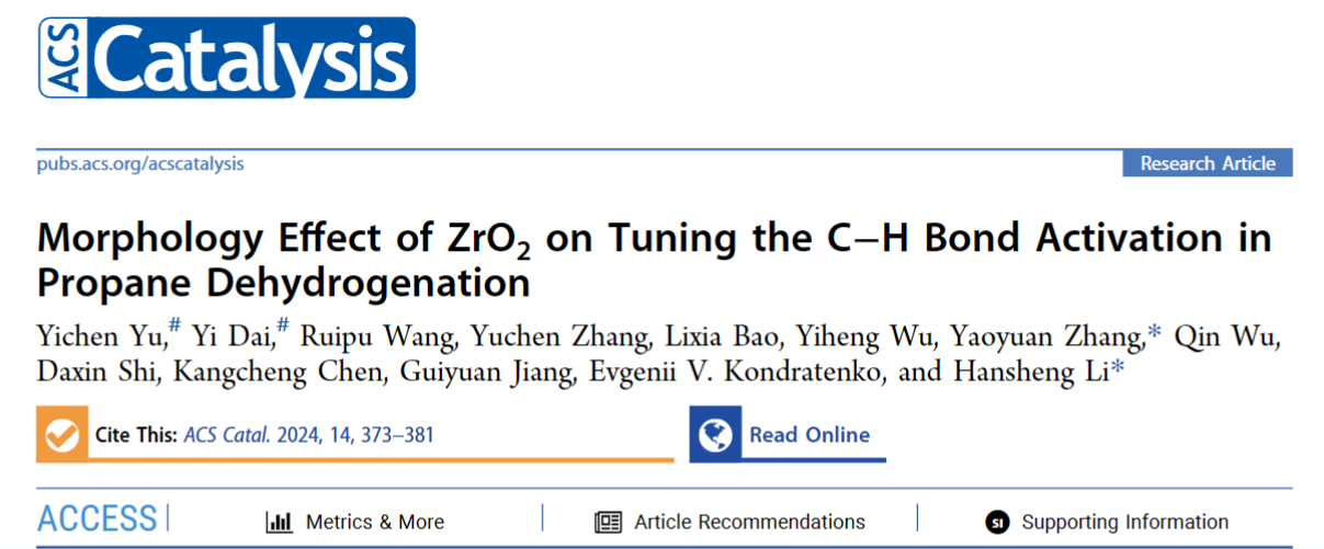 近日,北京理工大學(xué)化學(xué)與化工學(xué)院黎漢生教授團(tuán)隊(duì)在ZrO2形貌調(diào)控對(duì)丙烷脫氫反應(yīng)中C?H鍵活化方面取得重要進(jìn)展。相關(guān)研究成果以“Morphology Effect of ZrO2 on Tuning the C?H Bond Activation in Propane Dehydrogenation”為題,在催化領(lǐng)域頂級(jí)期刊《ACS Catalysis》上發(fā)表(DOI:10.1021/acscatal.3c04883)。該工作以北京理工大學(xué)為第一通訊單位,黎漢生教授和張耀遠(yuǎn)預(yù)聘助理教授為共同通訊作者,碩士研究生于宜辰和代怡為該論文的共同第一作者。