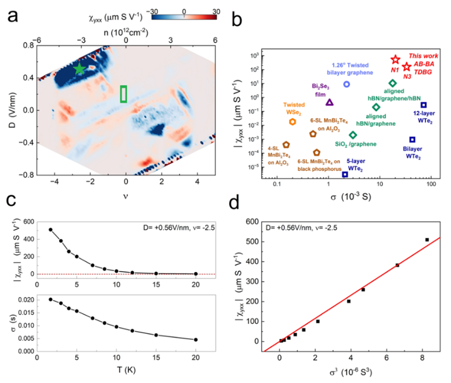 圖1. 轉角雙層-雙層石墨烯中有報導以來最大的二階非線性霍爾輸運信號
