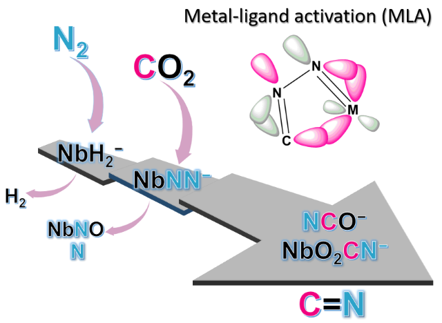 圖1. NbH2?與N2和CO2順次反應(yīng)示意圖