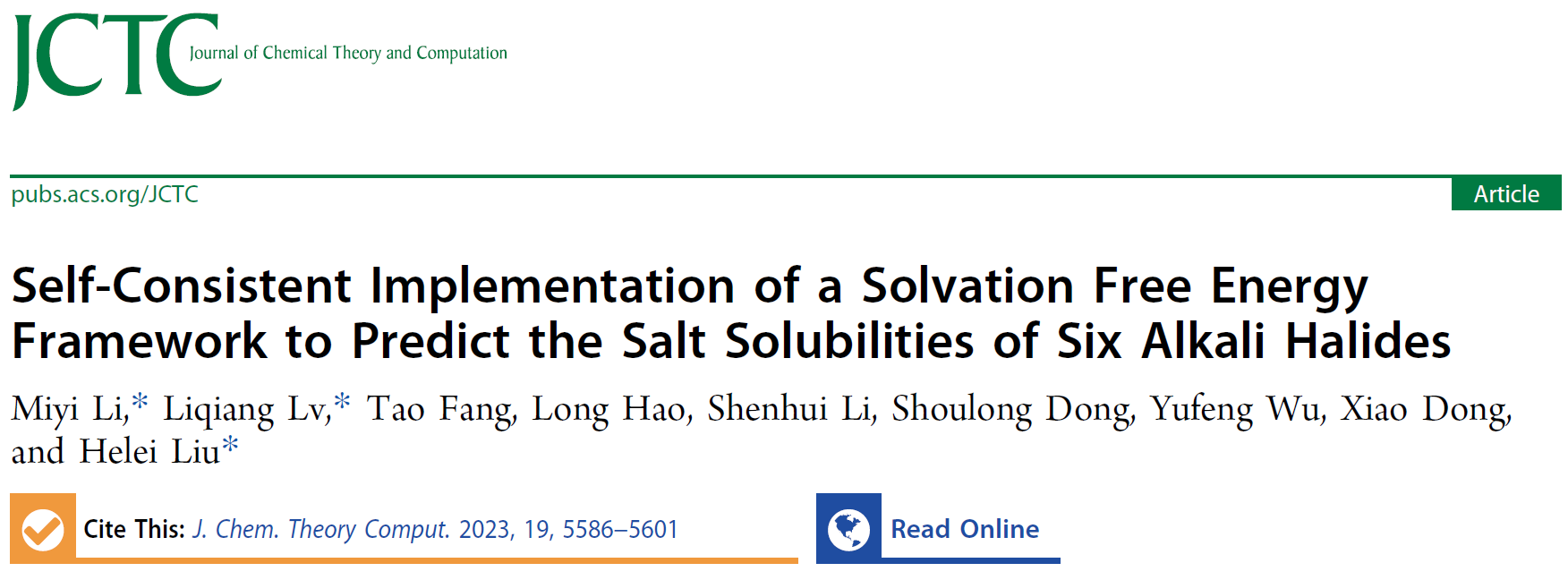 近日,北京理工大學(xué)化學(xué)與化工學(xué)院李彌異、劉賀磊、董守龍等在溶液熱力學(xué)領(lǐng)域發(fā)表重要研究性論文(https://doi.org/10.1021/acs.jctc.3c00083)。論文發(fā)表在《Journal of Chemical Theory and Computation》(影響因子:5.5,1區(qū)Top)。該工作以北京理工大學(xué)為第一通訊單位,李彌異為第一作者和通訊作者,劉賀磊教授同為通訊作者,董守龍、董曉老師,博士生李申輝,碩士生吳宇峰為參與作者。