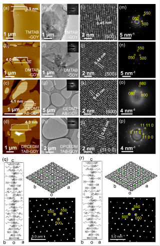 本文采用“自下而上”的方法,在銅箔表面通過炔-炔偶聯反應,制備了具有可調孔徑的基于TAB的類石墨炔二維結構(TAB-GDY)。通過機械超聲法制備得到約4 nm的超薄TAB-GDY膜,選區電子衍射(SAED)呈現明顯的六邊形對稱模式,證明了TAB-GDY薄膜的結晶性。結合實驗的SAED、DFT計算的晶胞參數、堆積結構建立和SAED模擬,確定了TAB-GDY層間采用了多重堆積的方式。