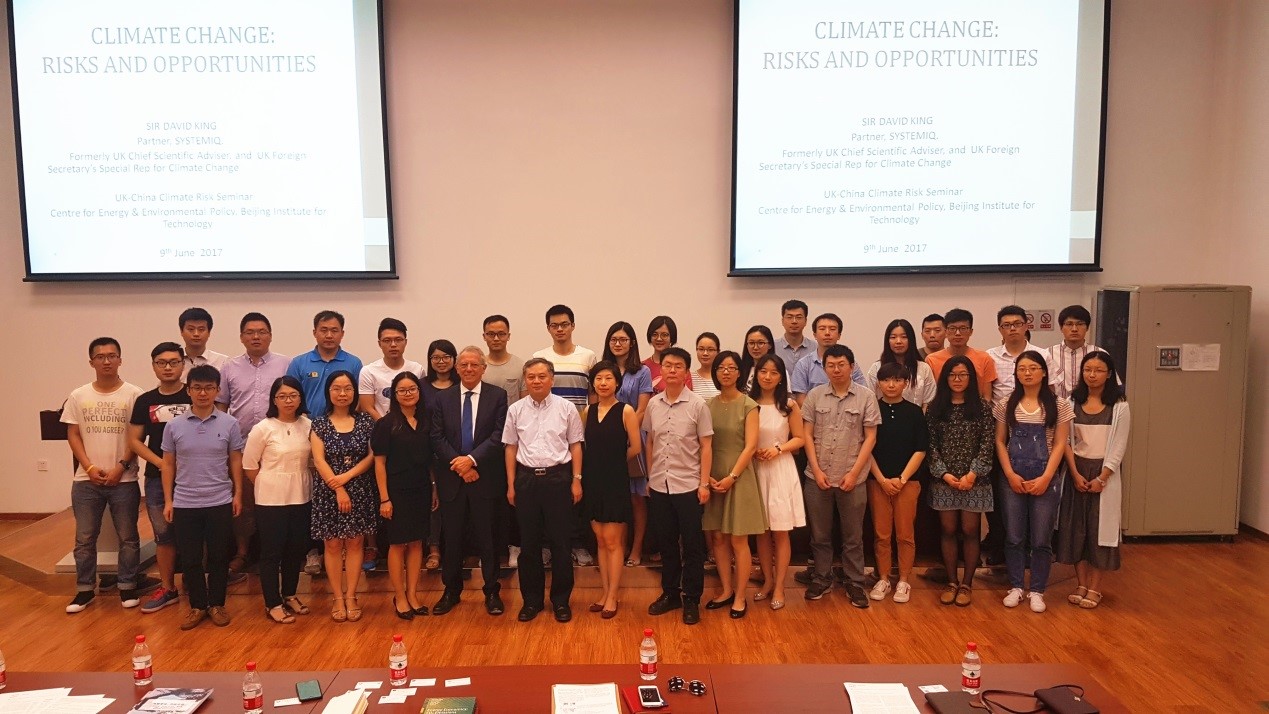 2017年6月9日上午,前英國氣候變化特別代表大衛?金爵士應邀來訪并做題為"Climate Change: Risks and Opportunities"的學術報告。中心眾多師生參加了報告會。報告會由北理工能源與環境政策研究中心主任魏一鳴教授主持。