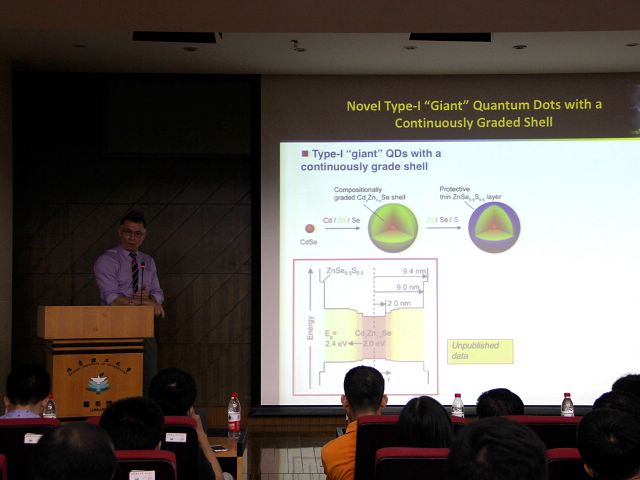 9月21日上午,在圖書館報告廳,北京理工大學材料學院、物理學院以及北京其他兄弟院校的100余名教師和學生聆聽了學術報告。Victor I. Klimov教授作了題為“Recent advances in colloidal-quantum-dot lasing:From zero-threshold optical gain to solution-processible laser diodes”的精彩學術報告,介紹了他本人課題組在量子點光學物理研究方面的原創性研究歷程及最新研究成果,報告深入淺出,大家爭相提問,現場氣氛熱烈,講座在大家的欲猶未盡中結束?! ?/p>