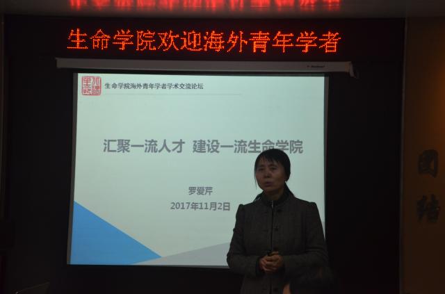 羅愛芹向與會的青年學者梳理了生命學院的發展歷史,并從學院師資隊伍、學科建設、學生情況、科研領域、人才培養成果、國際化合作等方面做了介紹,回顧了學院十五年來的跨越式發展和取得的教學科研成果。希望各位青年學者為學院的發展多提寶貴意見和建議。