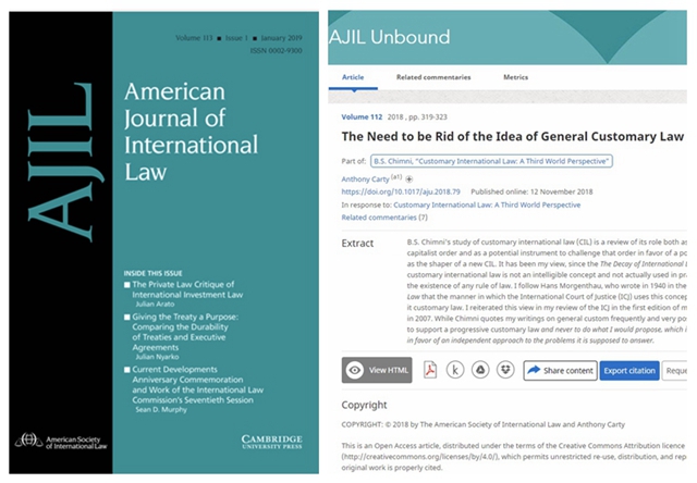 近日,我校法學(xué)院Anthony Carty教授以第一作者分別在國(guó)際法世界一流期刊《American Journal of International Law》(美國(guó)國(guó)際法雜志)、《The British Yearbook of International Law》(英國(guó)國(guó)際法年刊)、《Journal of International Legal History》(國(guó)際法律史雜志)連續(xù)發(fā)表三篇高水平學(xué)術(shù)論文。