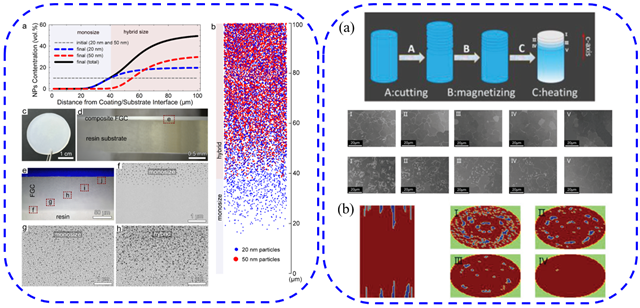 圖2 磁場調控混合磁性顆粒的梯度分布,退磁場誘導的表面退磁疇結構