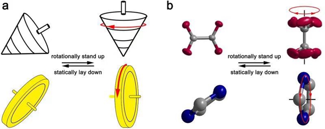 圖1 宏觀陀螺、輪子以及分子陀螺、分子輪的“進動”行為