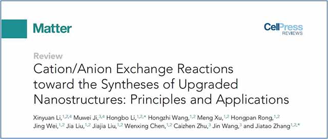 近日,北京理工大學(xué)化學(xué)與化工學(xué)院院長(zhǎng)張加濤團(tuán)隊(duì)在Cell旗下材料學(xué)旗艦期刊《Matter》上發(fā)表了題為《Cation/Anion Exchange Reactions towards the Syntheses of Upgraded Nanostructures: Principles and Applications》的綜述文章(Matter 2020, 2, 554-586),基于團(tuán)隊(duì)在離子交換策略精準(zhǔn)合成II-VI族摻雜及異質(zhì)納米晶及應(yīng)用方面研究成果,詳細(xì)介紹了合成無機(jī)納米晶的離子交換反應(yīng)的反應(yīng)機(jī)理、材料合成進(jìn)展、性能應(yīng)用和展望。