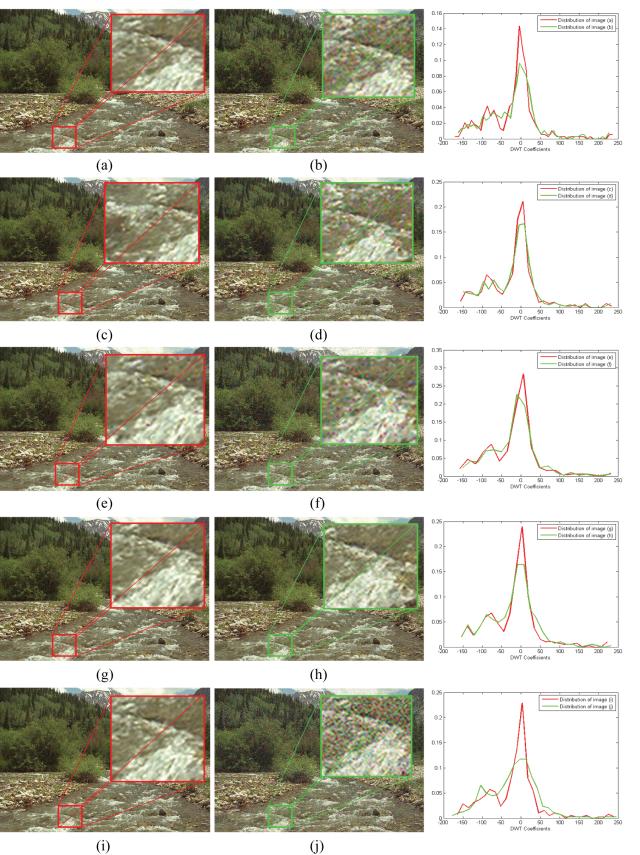 圖2.TID2008數據庫中噪聲污染圖像以及相應的二維小波系數分布圖