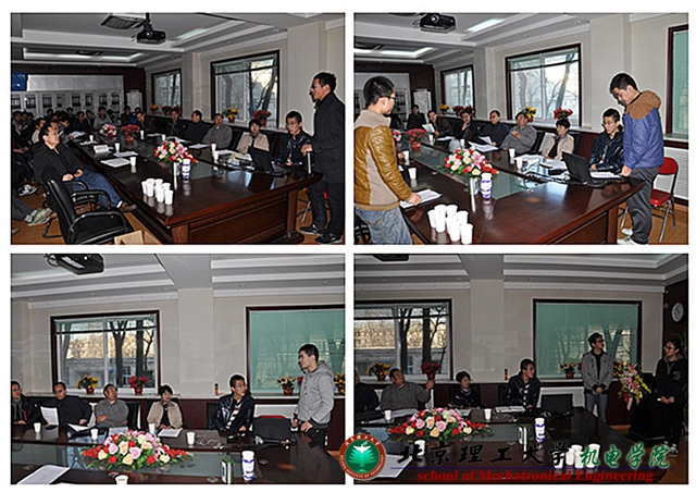 2013年12月1日上午,北京理工大學(xué)機(jī)電學(xué)院特種機(jī)器人創(chuàng)新團(tuán)隊(duì)和機(jī)電科協(xié)在國家重點(diǎn)實(shí)驗(yàn)室會(huì)議室正式舉辦機(jī)電學(xué)院國家級(jí)科技創(chuàng)新項(xiàng)目中期答辯會(huì)。宇航學(xué)院唐勝景老師、機(jī)車學(xué)院張春林老師、蘇偉老師、信息學(xué)院羅森林老師、計(jì)算機(jī)學(xué)院牛振東老師、機(jī)電學(xué)院栗蘋老師、楊瑞偉老師,以及項(xiàng)目指導(dǎo)老師羅慶生老師、韓寶玲老師出席了本次答辯活動(dòng)并擔(dān)任評(píng)委。項(xiàng)目組的全體同學(xué)參加了此次答辯。