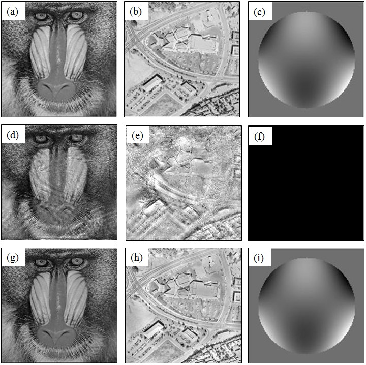 針對傳統傅里葉疊層顯微成像引入的各種像差,北京理工大學許廷發教授科研團隊提出了一種新穎的基于疊層衍射成像技術的像差校正方法。該方法結合了仿真和實驗驗證,并應用于人體血細胞的顯微成像。主要利用疊層衍射成像技術的優化策略對傅里葉疊層顯微成像重建進行改進。在更新成像過程中的頻譜和光瞳函數時,針對傳統更新策略因僅僅依賴頻譜和光瞳函數最大值而對突變敏感的局限性,創新性地引入更新因子自適應調控最大值和當前值之間的最佳比例,從而有效避免突變的影響,提高系統成像的清晰程度。將澤尼克多項式系數假定為空間變化的函數,以仿真空間變化的像差,利用提出的方法重建澤尼克多項式系數,并對加載混合像差的仿真圖像以及實際采樣的人體血細胞圖像進行重構。實驗結果表明,本文方法可以準確重建像差系數。此外,重構圖像清晰度顯著提高,可以準確分辨細胞輪廓。加載混和像差的仿真實驗結果如下。圖2 (a)-(c)依次為原始強度圖,相位圖和光瞳函數,(d)-(f)依次為未更新光瞳函數策略的重建結果,(g)-(i)為利用本方法的重建結果。可以看出,在混合像差的影響下,傳統的未更新光瞳函數的重建圖像較為模糊。采用本文光瞳函數更新方法后,圖像重建結果清晰度有明顯提高。