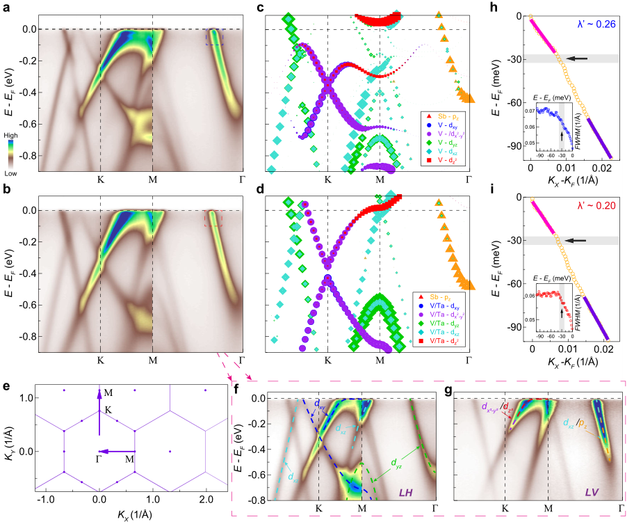 圖1. 25K下CsV-3Sb5和CsV2.6Ta0.4Sb5的能帶結構圖