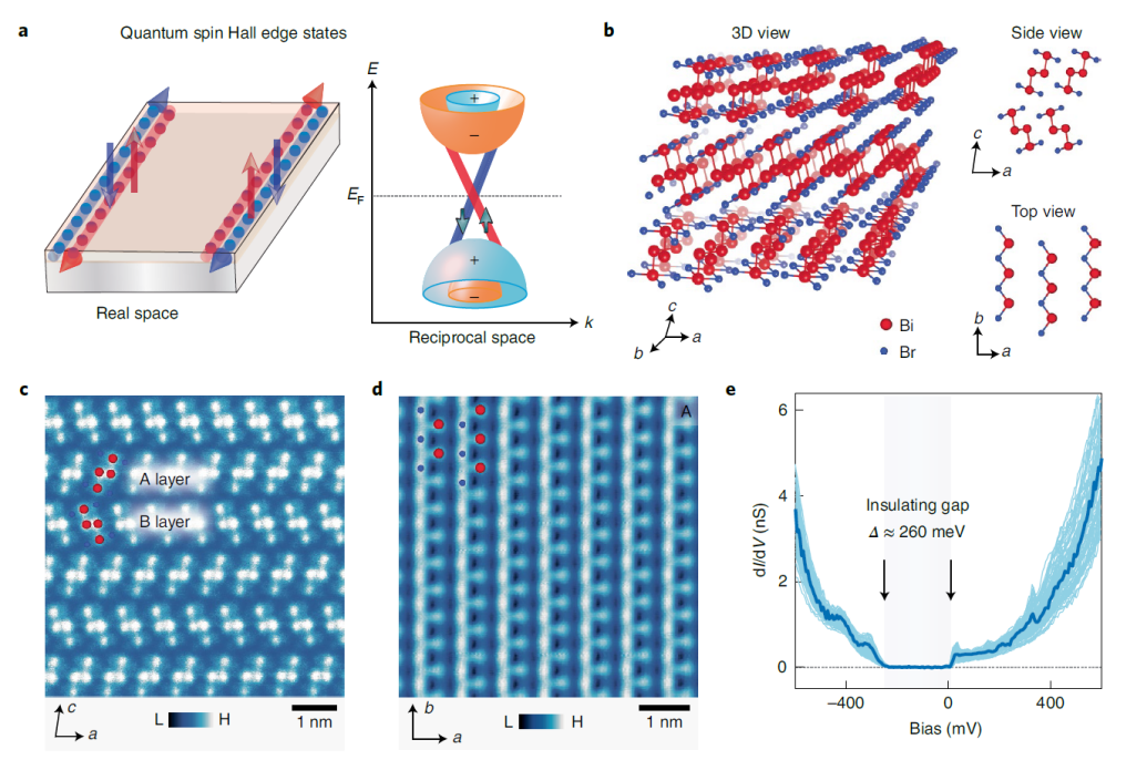 近日,北京理工大學物理學院姚裕貴團隊與普林斯頓M. Zahid Hasan團隊等合作,在高質量的Bi4Br4單晶材料表面觀察到室溫下的量子自旋霍爾邊緣態,在實驗上驗證了姚裕貴團隊于八年前提出的理論預言[Nano Lett. 14, 4767 (2014), NJP 17, 015004 (2015)],也為進一步實現室溫下的量子自旋霍爾效應帶來了希望。相關結果發表在近期的Nature Materials上,姚裕貴團隊成員王秩偉研究員為文章共同一作。