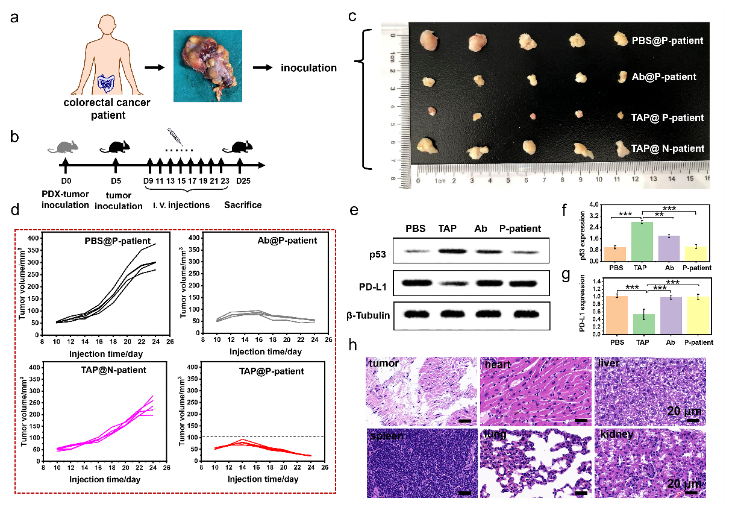 最后,在患者來源腫瘤異種移植(PDX)模型中,對TAP的抗腫瘤效果進行了驗證。
