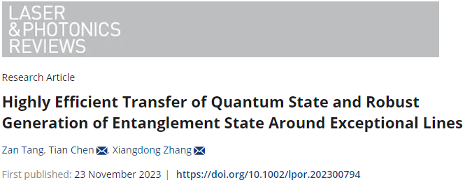 近日,北京理工大學(xué)物理學(xué)院張向東教授課題組設(shè)計(jì)非厄米量子行走,實(shí)現(xiàn)了高效量子態(tài)拓?fù)湔{(diào)控。相關(guān)成果以“Highly Efficient Transfer of Quantum State and Robust Generation of Entanglement State Around Exceptional Lines”為題發(fā)表在Laser & Photonics Reviews期刊[Laser Photonics Rev. 2023, 2300794]上。該研究工作得到了國(guó)家自然科學(xué)基金委的大力支持。北京理工大學(xué)物理學(xué)院湯贊博士、陳天副教授為該論文的共同第一作者,北京理工大學(xué)物理學(xué)院陳天副教授、張向東教授為論文共同通訊作者。