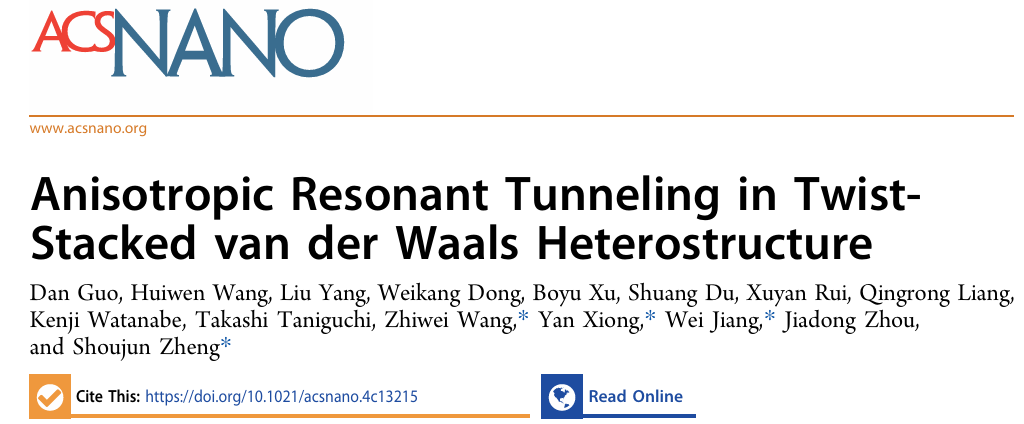隨著對二維范德華異質結構中共振隧穿的研究,其在能帶結構探測、多值邏輯運算和振蕩器等領域已得到廣泛的應用。由于晶格對準決定著共振隧穿過程中的動量守恒條件,研究者通常不會在共振隧穿晶體管中采用大扭轉角,避免扭轉角引起的動量不匹配可能會破壞共振隧穿條件,從而影響負微分電阻和峰谷比(PVR)。然而,扭轉角也可以提供控制層間耦合和能帶對準的額外自由度。此外,一些二維材料的各向異性的能帶結構,有望在動量空間中對共振隧穿和負微分電阻產生新穎的調制。因此,通過改變各向異性二維材料間的扭轉角度以調整晶格取向來探索共振隧穿現象,有望為共振隧穿現象提供一個新的調控手段。