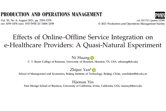 近日,北京理工大學(xué)管理與經(jīng)濟(jì)學(xué)院顏志軍教授團(tuán)隊(duì)在在線醫(yī)療服務(wù)領(lǐng)域取得重...