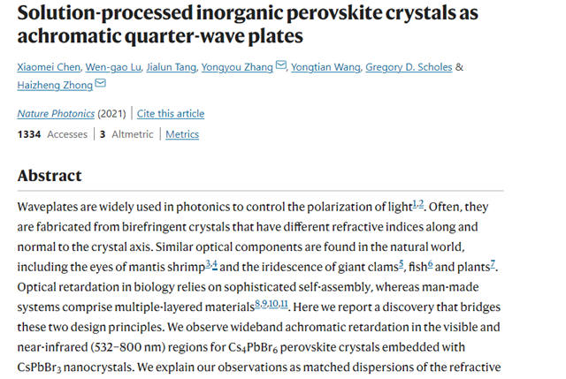 近日,北京理工大學(xué)材料學(xué)院鐘海政教授、兼職教授Greg Scholes...