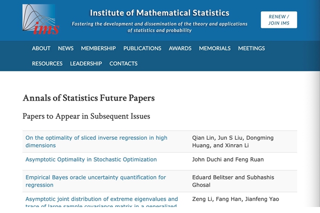 日前,北京理工大學數學與統計學院孔祥順助理教授及其合作者在統計學四大國...