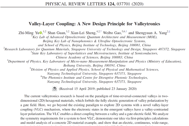 日前,北京理工大學姚裕貴教授團隊成員余智明及其合作者,在能谷電子學研究...