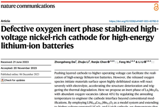 ?12月3日,北京理工大學材料學院李麗教授課題組在鋰離子電池高鎳正極材...