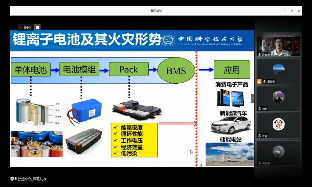 報告中,郝洪介紹了結構抗爆分析與設計領域的現(xiàn)狀和面臨的挑戰(zhàn),討論了可靠確定爆炸荷載難題以及對于結構響應預測的影響,分析了簡化分析方法的局限性,同時對不同加載速率條件下結構的動態(tài)響應與破壞機理進行了深入討論。孫金華的報告重點介紹了鋰離子電池安全現(xiàn)狀、火災發(fā)生機理與研究方法、防控技術原理以及在實際條件下的應用情況,并對鋰離子電池安全研究面臨的新的問題進行了展望。高偉的報告介紹了火焰的不穩(wěn)定、湍流擾動對氫氣火焰加速的影響規(guī)律,揭示了氫氣爆炸超壓形成機理,建立了耦合火焰加速傳播的爆炸壓力預測模型。黎波針對極限條件下材料的超大變形、熔化氣化、流固與熱流固耦合、自由表面、多體接觸、碎裂、層裂與碎片云等復雜物理現(xiàn)象的數(shù)值求解提出了一種熱力耦合最優(yōu)輸運無網(wǎng)格方法。張勇的報告對高熵合金的定義與特性進行了詳細闡述,介紹了高熵薄膜、高熵陶瓷及高熵纖維等新型高熵材料的概念與應用,對高熵材料的未來發(fā)展趨勢進行了展望。李江濤的報告介紹了被動輻射冷卻技術,重點介紹了陶瓷成型的新方法——燃燒合成法。陳浩的報告介紹了一種新型化學界面工程方法,借助瞬時加熱工藝,獲得了超細馬氏體和奧氏體的復相組織,實現(xiàn)了先進高強鋼的設計。于興華的報告以耐熱鋼的蠕變壽命預測為例,采用多種機器學習算法,對合金蠕變性能進行預測,提出了動態(tài)數(shù)據(jù)選取及模型建立的材料性能預測方法。
