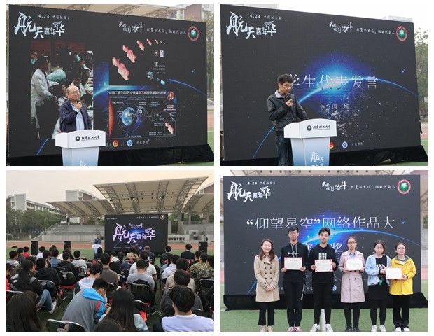 隨后,與會嘉賓為“航天嘉年華”活動“仰望星空”網絡文化作品大賽獲獎同學頒獎。校團委副書記劉淵在致辭中希望同學們以習近平新時代中國特色社會主義思想為指導,深入學習宣傳貫徹黨的十九大精神,要把強大國家、復興民族的偉大使命用實際行動書寫在浩瀚星空,努力成為能夠擔當民族復興大任的時代新人。