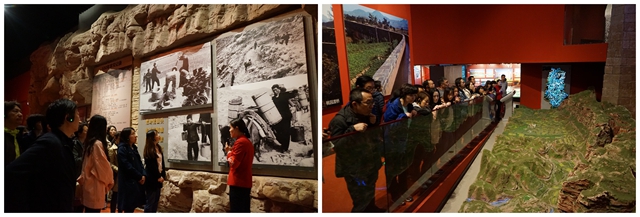 在紅旗渠紀念館,跟隨講解員的介紹,黨員們再次感受到紅旗渠修建時所克服的重重困難以及林州人民克服萬難積極向上的勇氣和決心。紅旗渠的設計和修建,涌現出一批如楊貴、吳祖泰等身先士卒、聰明勇敢的模范榜樣,塑造了不怕困難、無私奉獻的共產黨人形象, 是對偉大的紅旗渠精神的大力弘揚。
