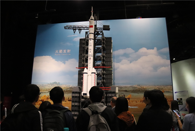 講座結束之后,同學們來到了科技館四層的“太空探索”展廳。展廳設置了飛天之夢、登天之梯、人造衛星、載人飛天、奔向月球、邁向深空六個主題展區。從嫦娥奔月到萬戶飛天,再從我國第一顆人造衛星“東方紅一號”發射到玉兔二號駛抵月球表面,展館生動形象的展示了中國航天從歷經艱辛到舉世矚目的曲折歷程,給同學們留下了深刻的印象。