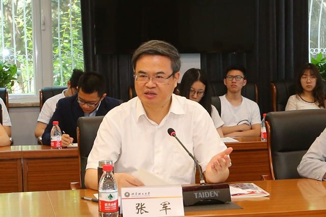 張軍對同學們畢業后立志奉獻偉大祖國感到欣慰,對同學們在北理工有所收獲成長感到自豪,對學校培養了又一批優秀學子感到高興。隨后,張軍為同學們講授了離校前最后一堂思政課。張軍指出,到本世紀中葉我國將建成富強民主文明和諧美麗的社會主義現代化強國,同學們和祖國同成長共奮斗,要深感責任重大、使命光榮,接過實現中華民族偉大復興的接力棒,將自己的青春夢融入中國夢之中,不忘求學初心,牢記自身使命,努力做到以下四點: