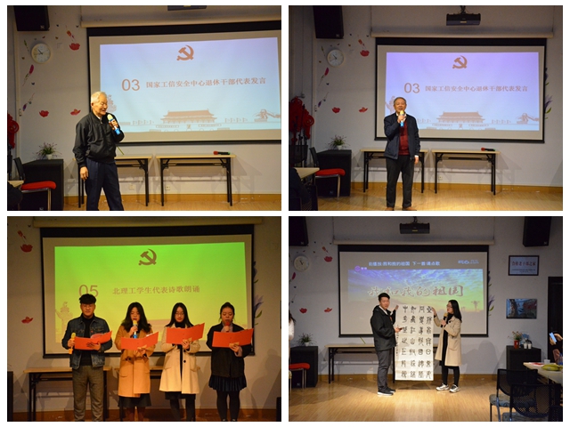 為深入學習貫徹習近平新時代中國特色社會主義思想,全面把握守初心、擔使命、找差距、抓落實的總要求,北京理工大學設計與藝術學院研究生黨員認真學習主題教育相關書目,探討如何成長為擔復興大任的時代新人。為實現在活動中實踐成長,11月8日上午,設計與藝術學院研究生黨員代表赴國家工業信息安全發展研究中心,為退休老干部們宣講服務保障國慶任務。北京理工大學設計與藝術學院副書記、副院長孫飛,國家工信安全中心團委書記于志成及青老黨員40余人參加了此次活動。