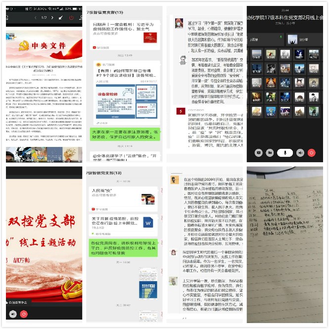 各黨支部高度重視,提前召開線上支委會,精心準備學習資料、活動內容,積極發揮主體作用,結合本支部黨員的學習實際、生活實際、思想實際,加強策劃與組織,做好宣傳引導,從以下五個方面扎實有效開展了黨日活動。一是深入學習習近平總書記關于疫情防控工作的重要講話指示批示,學習中共中央《關于加強黨的領導、為打贏疫情防控阻擊戰提供堅強政治保證的通知》要求。二是進一步落實學校黨委《關于進一步加強疫情防控工作的方案》及《關于充分發揮全校黨組織戰斗堡壘作用和共產黨員先鋒模范作用堅決打贏疫情防控阻擊戰的通知》等相關部署。三是要求學生黨員嚴格遵守有關疫情防控的有關規定,聽從學校相關安排。主動做到“不離家、不返校、不返京、不流動”,每日進行健康報告,與導師、班主任、輔導員加強溝通聯系,堅持“停課不停學”。四是教育引導黨員積極發揮模范帶頭作用。自覺做到減少外出活動,做好科學防護,主動擔當作為,盡己所能參與到當地政府、社區的防控工作中。五是每名黨員立足實際,重點圍繞防控有關精神、學校學院相關要求,針對個人學業科研進展等情況,進行了交流分享。