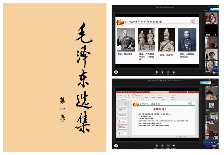 “學習之路”黨員讀書會是生命學院黨委組織指導的學生黨支部系列活動,引導黨員學原著、悟原理,每月一期,由一個黨支部領學一本理論著作,黨支部書記共同參加學習,不斷提升黨員理論學習水平。2020年5月7日,生命學院2019級碩士第一黨支部在“云端”開展了“學習之路”黨員讀書會第八期,領學了《毛澤東選集 第一卷》(以下簡稱《毛選一》),生命學院副書記副院長郭惠芝、生命學院全體學生黨支書、生命學院2019級碩士第一黨支部全體黨員參加了此次讀書會,并分享了學習體會。