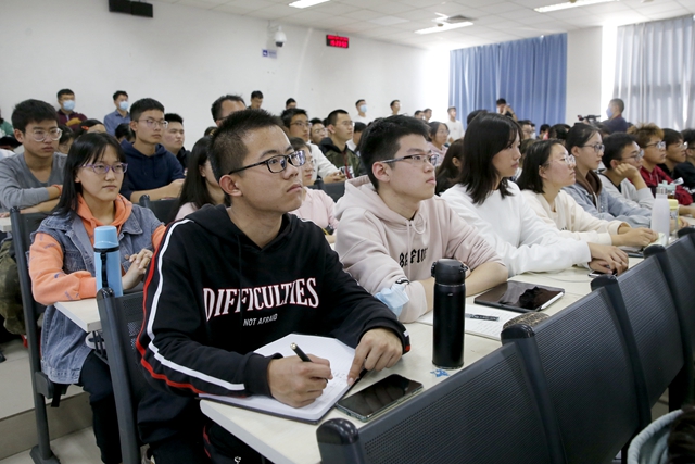 “2020年,更加強調(diào)以人民為中心,將人民群眾的生命安全和身體健康放在最重要的位置”,趙長祿以新冠肺炎疫情在全球的大流行為切入點,為同學們分析了我國經(jīng)濟社會發(fā)展面臨的新形勢。他講到,當今國際形勢風云變幻,國內(nèi)環(huán)境深刻變化,“危”與“機”并存,想要抓住新一輪產(chǎn)業(yè)變革和科技革命所帶來的重大歷史機遇,就要保持戰(zhàn)略定力、緊緊圍繞全面建設社會主義現(xiàn)代化強國目標,做好自己的事情。趙長祿引導同學們思考這樣一個問題:“結合國家的戰(zhàn)略需求和學校的人才培養(yǎng)目標,‘我’應該樹立什么樣的志向,確立什么樣的目標?”