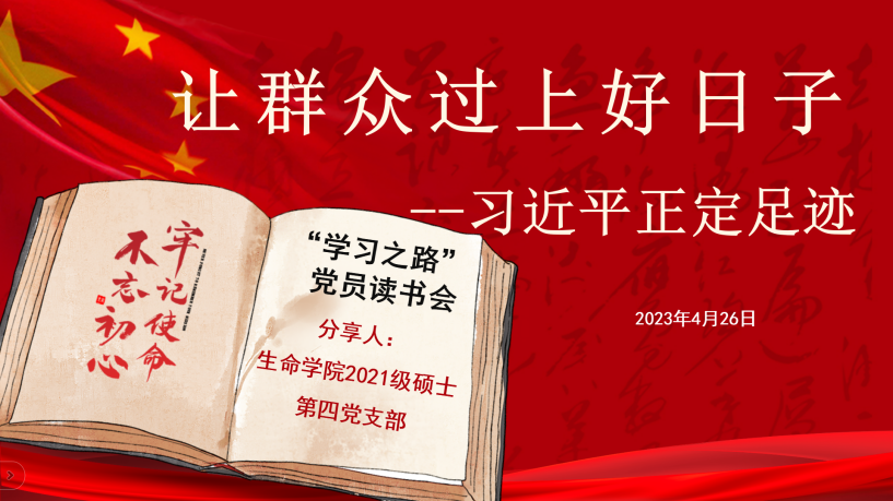 在第28個世界讀書日到來之際,為營造良好學習氛圍,生命學院2021級碩士第四黨支部舉行以《讓群眾過上好日子——習近平正定足跡》第三十期黨員讀書分享會。讀書分享會由支部書記樊玥蕓主持,學院黨委副書記、副院長郭惠芝和全體學生黨支部書記共同學習交流。