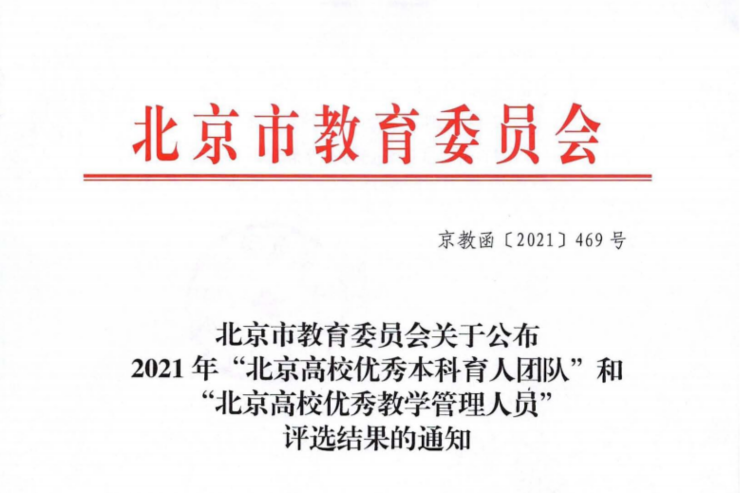 近日,北京市教育委員會發布了《關于公布2021年“北京高校優秀本科育人團隊”和“北京高校優秀教學管理人員”評選結果的通知》。。