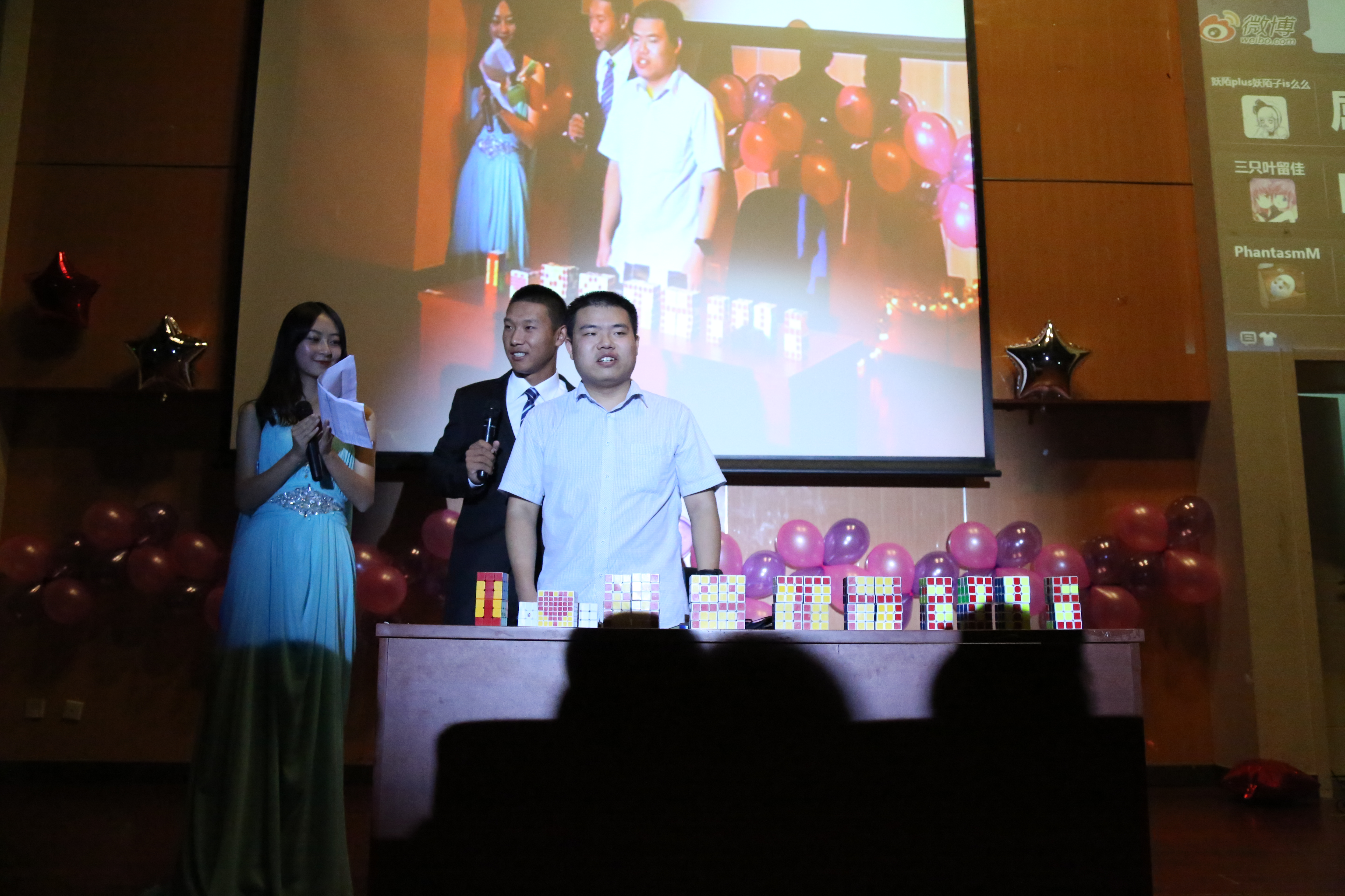博士生王宇欣在中國魔方屆是多項記錄的保持者,他為大家帶來的節目《玩轉魔方》使全場觀眾屏息凝視全神貫注,他展現了多項技能,尤其是在盲擰的情況下用魔方拼出了“I