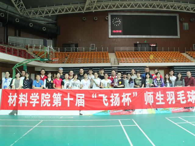激情四月,情系師生,羽動你我。2016年4月12日至25日,北京理工大學材料學院第十屆“飛揚杯”師生羽毛球賽在北京理工大學體育館火熱舉行。“飛揚杯”是材料學院的傳統體育賽事,今年正值十周年之際,得到了學院廣大師生的大力支持和踴躍參與。比賽采用團體賽形式,學院十四支隊伍百余名師生參加了男單、女單、男雙、女雙、混雙多個項目的競技。