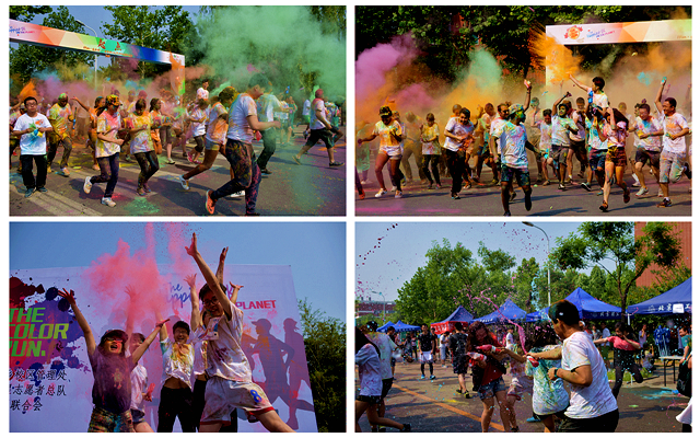 比賽的第一個環節是“校園長跑趣味賽”,身穿白色T恤手持彩跑粉的選手一邊奔跑,一邊將各色彩跑粉向其他的選手拋灑,賽事服務志愿者也用道具向整個方陣噴射彩跑粉,整個方陣瞬間變得五彩斑斕,彰顯著青年學生多彩的青春活力。同學們也在游戲互動中增進了交流,感受著體育運動的樂趣。