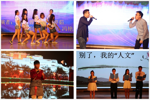 畢業生歡送會在七名美麗女生的舞蹈中開場,舞蹈洋溢著青春的活力,傳遞出輕松活潑的氣息。劉舸、菲爾頓同學一曲《In The End》帶動了全場師生的熱情。一段12級同學獨有記憶的視頻帶領全體畢業生重溫青春的過往,感懷逝去的韶光。阿旺次仁同學演唱藏族歌曲《祝福朋友》將歡送會推向高潮,藏族畢業生們向學院領導和老師們敬獻哈達,送上衷心的感謝和美好祝福。劉夢醒、刁海璨、李永崢、李克寒同學朗誦《別了,我的人文》感人肺腑,勾起了畢業生對大學生活的無盡回憶。
