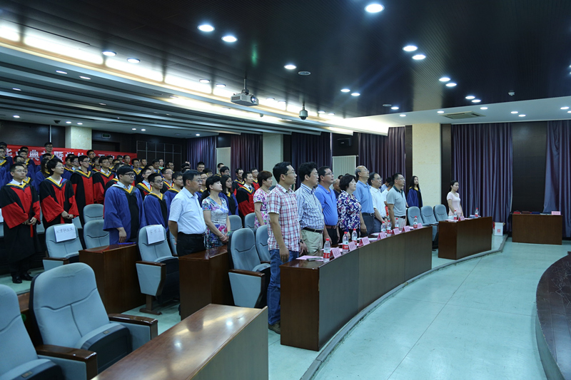 畢業典禮在莊嚴的國歌聲中開始。首先由副院長王寧飛宣讀學位授予決定:經學位委員會審核通過,宇航學院2016屆畢業研究生共56人獲得碩士學位,24人獲得博士學位。