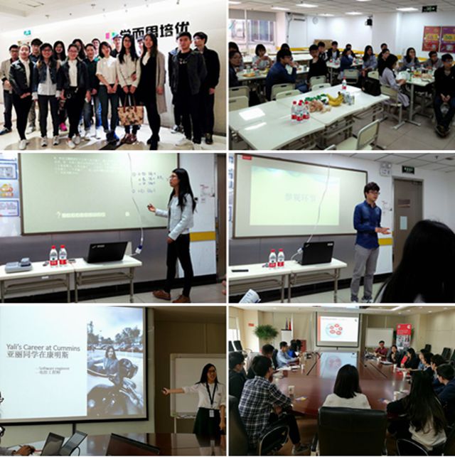 在模擬面試后,進(jìn)入“笑迎職場”的第三階段—企業(yè)認(rèn)知行。本次活動目的在于通過實地走訪與校友座談,從橫向與縱向兩方面加深學(xué)生對企業(yè)的感知。北京世紀(jì)好未來教育科技有限公司與康明斯(中國)投資有限公司提供了大力支持與幫助,近40名學(xué)生參加了此次活動。4月20日上午,近20名同學(xué)來到北京世紀(jì)好未來教育科技有限公司學(xué)而思培優(yōu)事業(yè)部,在校友胡垚老師的帶領(lǐng)下,參觀了海淀黃莊校區(qū)的教師辦公區(qū)和學(xué)生授課區(qū)。在精彩生動的企業(yè)介紹和工作感想分享后,進(jìn)入模擬面試環(huán)節(jié)。學(xué)生們積極報名參加模擬面試,感受與傳統(tǒng)制造業(yè)不一樣的試講環(huán)節(jié)。最后面試官建議有意從事教育培訓(xùn)行業(yè)的學(xué)生在面試中應(yīng)注意語音語調(diào),積極調(diào)動學(xué)生積極性與互動,展現(xiàn)出對教育事業(yè)的熱愛和激情。4月20日下午,10多名同學(xué)一起來到康明斯中國的總部,感受外企文化??得魉梗ㄖ袊┑男匠旮@偙O(jiān)Karen Zhao、中國區(qū)招聘負(fù)責(zé)人Anna Zhao、校園招聘經(jīng)理Kyle An、中國工程部控制工程負(fù)責(zé)人兼校友Carl Jiang、控制工程部技術(shù)專家兼校友Wang Yali和高級VPI服務(wù)工程師兼校友Li Siqi出席了本次座談會。在相互認(rèn)識后,康明斯(中國)的各位領(lǐng)導(dǎo)分別介紹了機構(gòu)構(gòu)成、企業(yè)文化、薪酬福利、校招標(biāo)準(zhǔn)等同學(xué)們感興趣的內(nèi)容。隨后,校友亞麗以“亞麗同學(xué)在康明斯”為題分享了自己在康明斯(中國)工作7年的經(jīng)歷與成長。在最后的Q&A環(huán)節(jié),同學(xué)們暢所欲言,分別就傳統(tǒng)行業(yè)如何應(yīng)對新能源崛起態(tài)勢、能否提供實習(xí)機會、公司價值取向等感興趣的方面進(jìn)行提問,得到了校友和HR們的耐心解答。兩場企業(yè)認(rèn)知行活動在輕松愉悅的氣氛中結(jié)束了,同學(xué)們普遍反應(yīng)此次走近企業(yè)活動收獲頗豐。