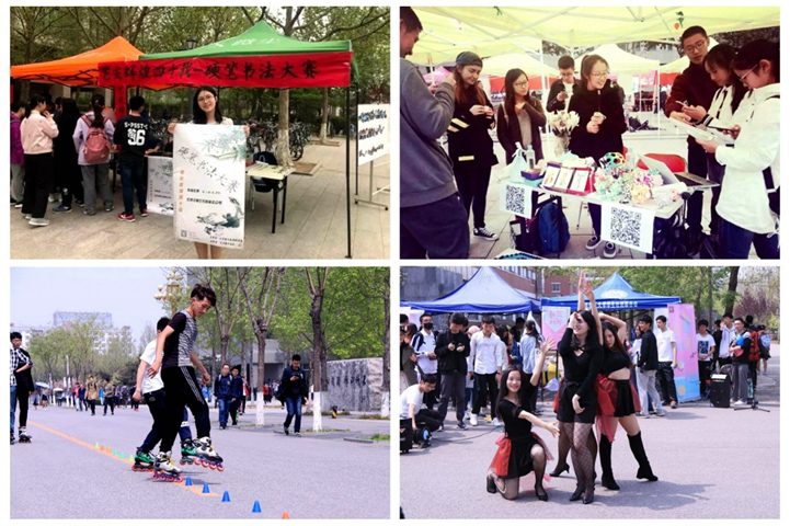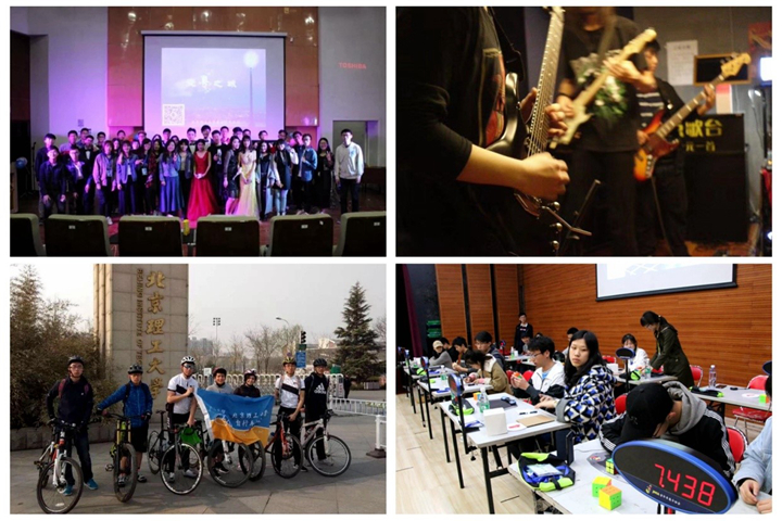 社團活動讓春天里的校園熱鬧非凡。獨立音樂協會的2018MIDI北京高校吉他彈唱大賽預選賽、粵文化交流社的粵語歌賽、鄉琴協會的吉他公開課等活動帶動了同學們對音樂的熱情;心理健康協會的“風箏節”、計算機協會的“計算機文化月”、自行車協會的“騎行長街品豆汁”、酷愛輪滑俱樂部的校輪滑賽等活動鼓勵同學們感受春日暖陽,釋放青春活力;綠萌環境與資源保護協會的“再生紙緣,環保同行”、法師聯盟的法律熱點問題交流等活動引導同學們關注時事熱點,增強責任擔當;無陽齋書畫社的“筆尖輝煌四十年”硬筆書法比賽、京工演講團的第四屆“北理演說家”演講比賽、魔方交流社的首屆魔方大賽、DIY手工社的校園手工達人評選、折紙協會的折紙藝術展等活動在同學間引發熱烈反響。