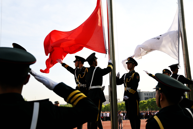 伴隨著雄壯的國歌聲,五星紅旗在朝陽中冉冉升起。響徹校園的不僅是在場全體人員共同唱響的國歌,更是在五四青年節到來的時刻北理工青年做出的莊嚴承諾。