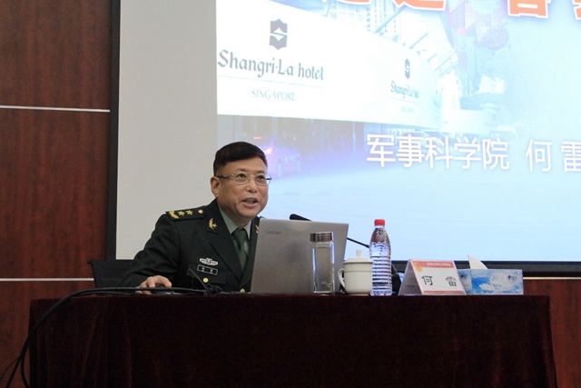 何雷中將作主題報告。何雷系統介紹了兩次率領中國代表團參加“香格里拉對話會”(亞洲安全峰會)的基本情況,介紹了在重大軍事外交活動中面對的形勢與挑戰,介紹了中國代表團在傳播中國聲音、維護國家利益、展示大國風采、當好友誼使者等方面取得的豐碩成果。對話會上,以何雷為代表的中國代表團在臺灣問題、南海問題等主權問題上嚴正了立場,對“中國威脅論”等錯誤思維進行了駁斥,展示了新時代強國強軍的風采和中國軍人的形象。全體學員深切感受代表國家和軍隊出征的光榮自豪,感受實現偉大復興路上的嚴峻挑戰和巨大壓力,更加堅定了成長為擔當民族復興大任時代新人的決心。