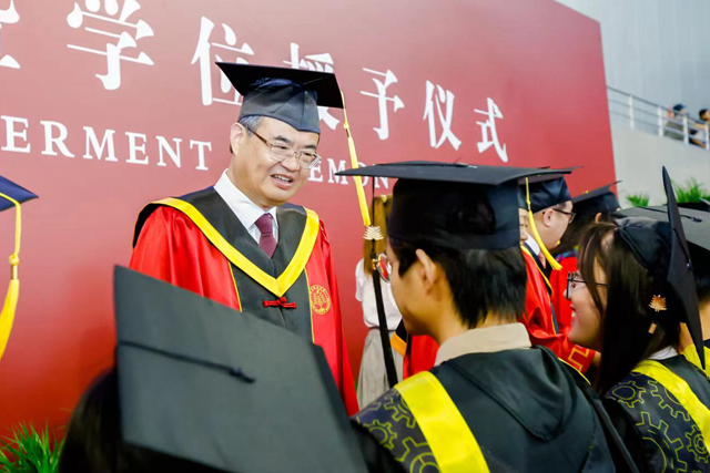 首先,我代表學校黨委書記張軍院士和全體師生員工,向圓滿完成學業的9886名畢業生表示熱烈的祝賀、向為你們默默付出的家長們、老師們致以崇高的敬意!