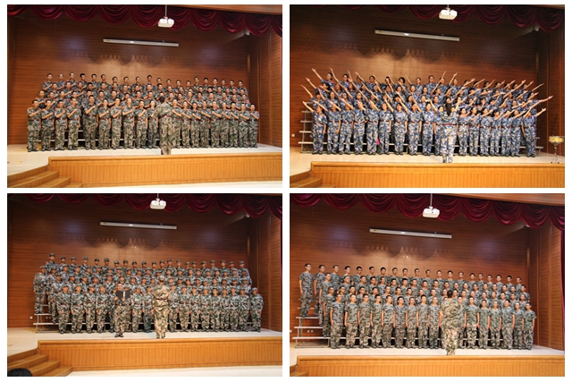 律動的歌曲,變換的造型,拼接成一道道美麗的風景。軍訓旅各營參賽隊伍用歌聲表達對黨的熱愛,為祖國奮斗的堅定信念。