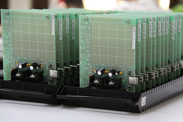 實(shí)驗(yàn)完成后,同學(xué)們鄭重地在自己的第一份作品上貼上標(biāo)簽,在器件架上碼放整齊,那一排排綠色的電路板彰顯著理工學(xué)子“學(xué)以精工”的風(fēng)采。
