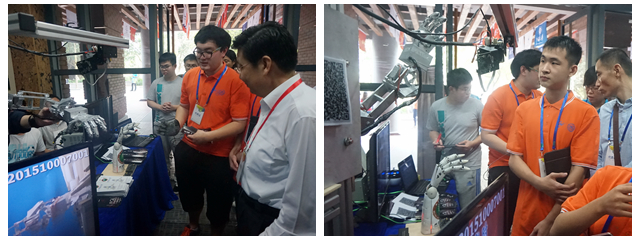 北理工機電學院的參賽項目《自適應語音肌電信號混控靈巧手》、《多模聯控機械臂》榮獲由學生推選的“我最喜愛的項目”和專家評選的“最佳創意項目”稱號。其中《自適應語音肌電信號混控靈巧手》在上述兩個獎項中均排名第一,《多模聯控機械臂》同時奪得“創新方法應用獎”。學院副書記、副院長陳軍到現場觀摩指導并慰問參賽同學。